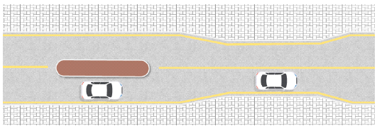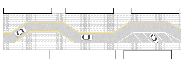 - 만약 기존 시설물을 이설하기 어려운 상황이라면 도로의 차선을 지그재그 형태로 만들고 안전지대, 노상주차면 등 노면표시를