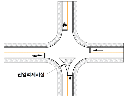 - 자동차의 통행을 차단하거나 우회하기 위해 교차로, 진입로 구간에 교통섬 등의 시설을 설치하는 것을 말하며,