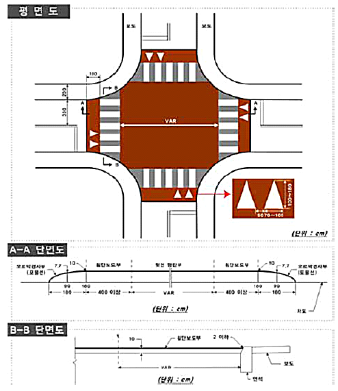 ※ 고원식 교차로 설치에 대한 상세한 내용은 「교통약자 이동편의시설 설치 관리 매뉴얼(국토교통부)」과