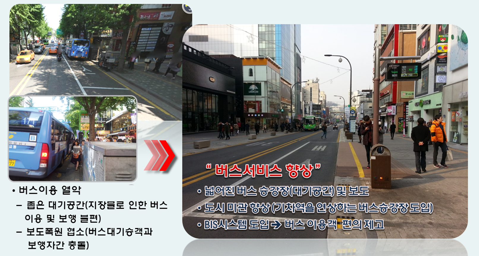 (1) 대중교통전용지구 지정으로 대중교통의 질이 개선될 수 있는 곳으로대중교통의 속도가 개선되고 환승 등 이용의 편리함이 증진될 수 있어야 함