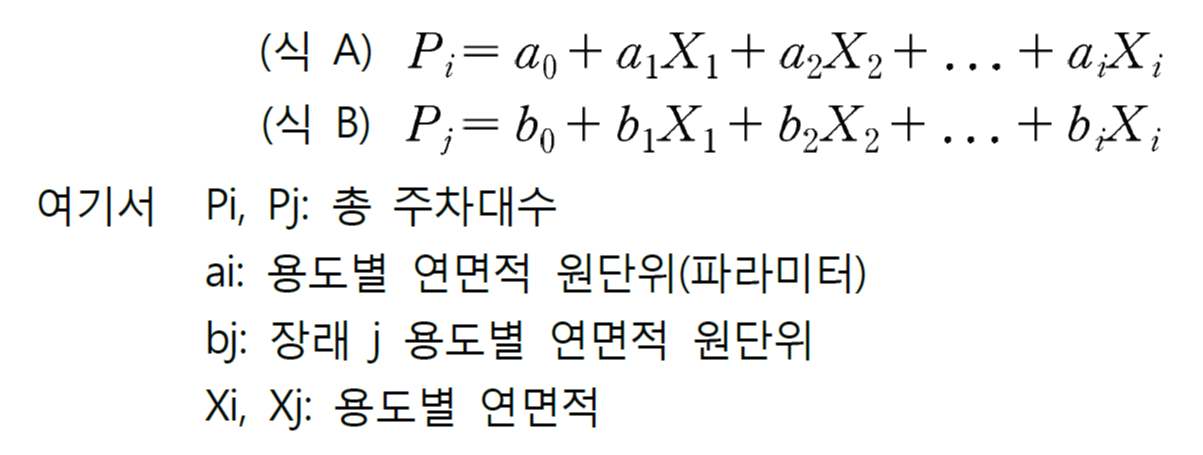 시설물의 면적을 토대로 주차수요를 예측하는 기법