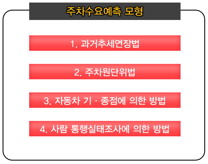 | 과거추세연장법 | 연도별 노상・ 노외 주차 실태 조사 |