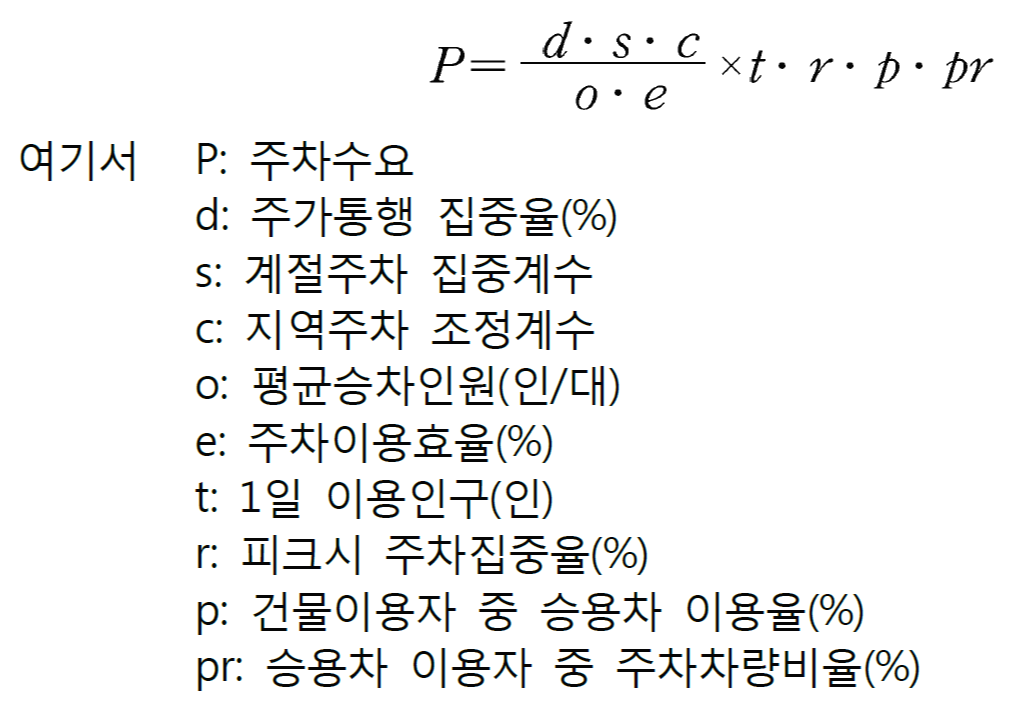 P 요소법 | -평균승차인원 -주차이용효율 -1일 이용인구 -주차형태 |