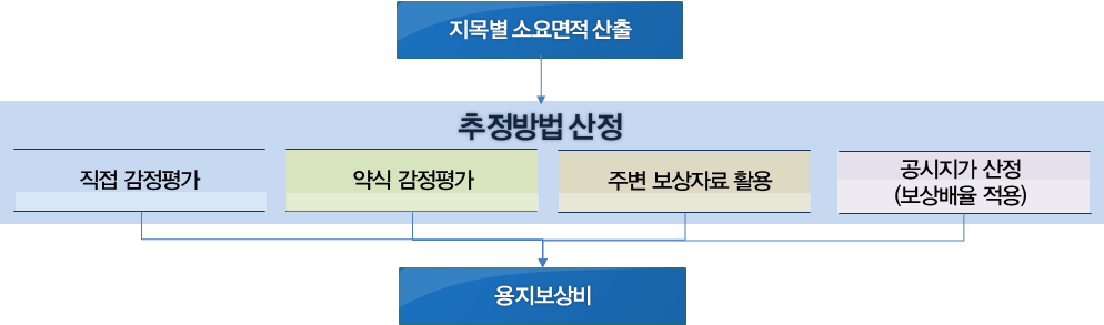 용지보상비 추정방법은 다음의 순서에 따라 가능한 방법을 순차적으로 적용하도록 한다.