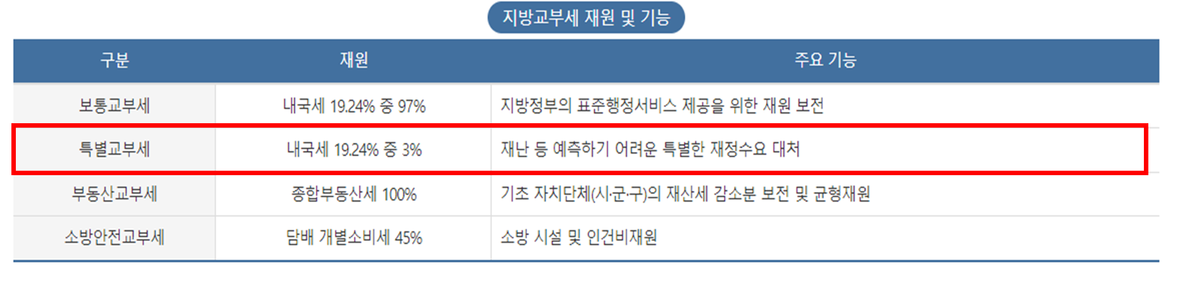 - 특별교부세는 지방교부세 중 하나로, 보통교부세(지자체의 부족한 일반재원을 보전)가 포착할 수 없는 특별한