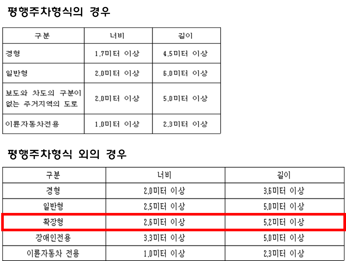 확장형 주차면 크기