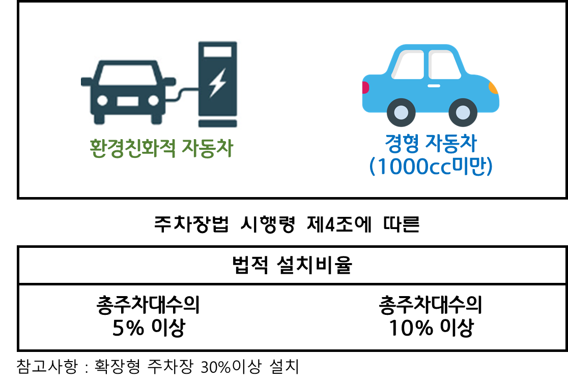 1. 경차 및 친환경 자동차 전용 주차구획이 일정비율 설치 → 준수여부