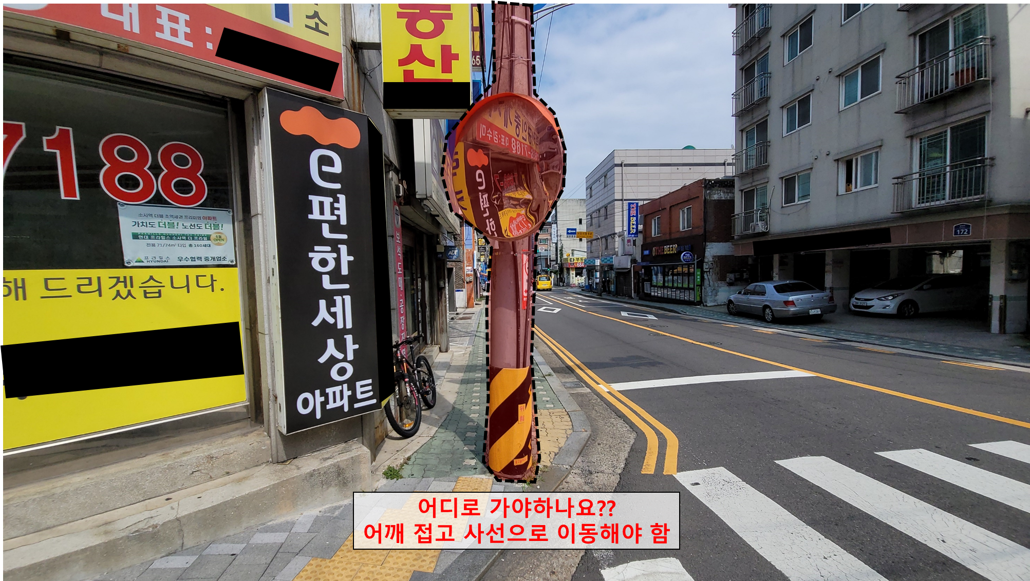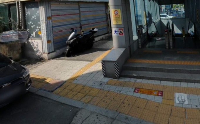 도심에서의 보행공간을 방해하는 사례사진은 아래와 같음