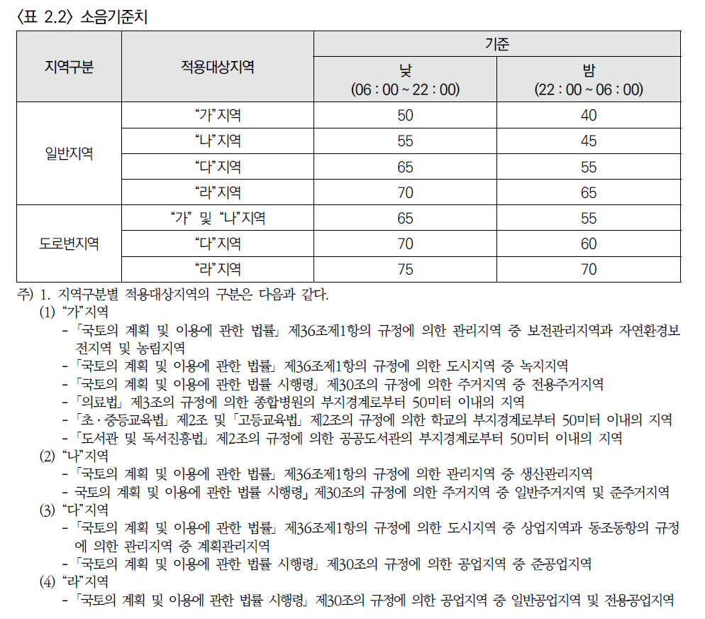 일관된 소음 정책 추진 측면에서 관리 기준 일원화는 필요한 부분이다.