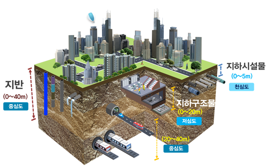 대심도는 지표면에서 40m 이하 깊이에 있는 지하 공간을 말함