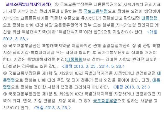 지속가능교통물류발전법 제41조(특별대책지역 지정)